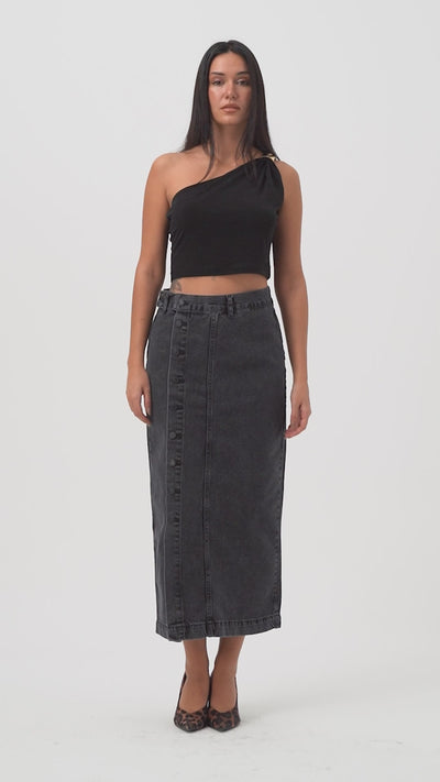 Women's Gray Smoke Color Front Buttoned Maxi Length Denim Skirt