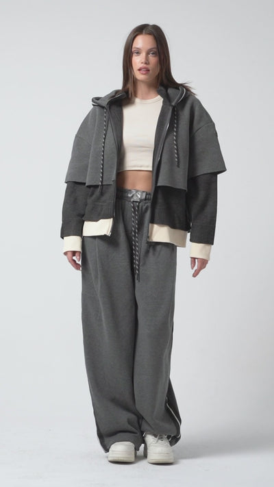 Kadın Gri Renk w5-45 Örme Kumaş Polar ve Eşofman Alt Üst 2li Tasarım Takım