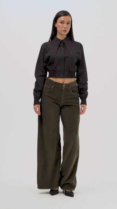 Kadın Haki Renk Hera 26w5-15 Palazzo Fit Kalın Fitilli Velvet Kadife Kumaş Pantolon
