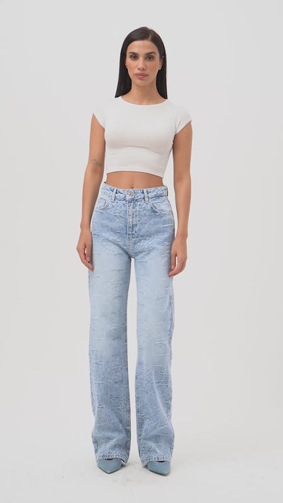 Kadın Ice Kot Rengi 4s6-3 Straight Fit Yüksek Bel Özel Kumaş Tasarım Denim Jean
