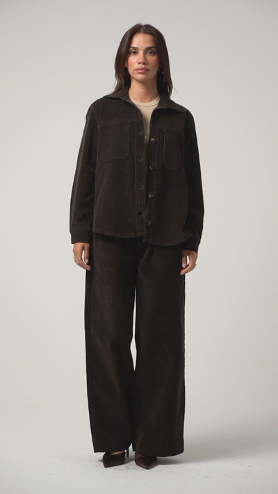 Kadın Kahverengi 26w5-136 Midrise Wide Leg Fit Fitilli Velvet Kadife Kumaş Pantolon