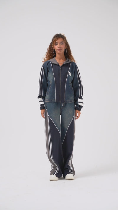 Kadın Kot Laci Renk Denim Dokuma Çift Parça Kumaş Oversize Kapüşonlu Tasarım Denim Ceket