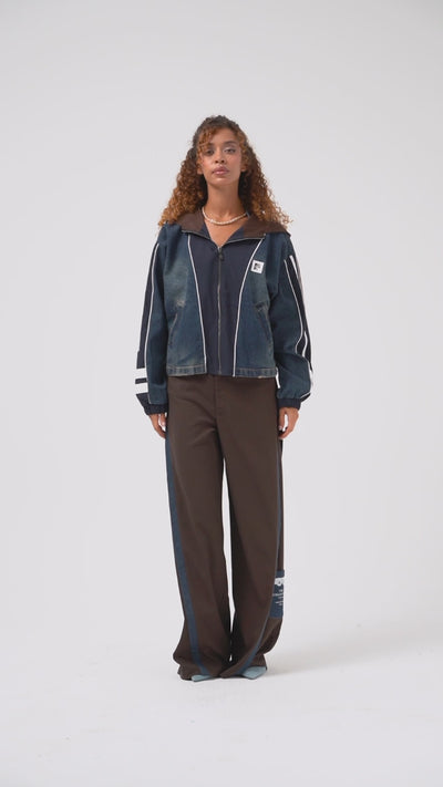 Kadın Kot Rengi Denim Dokuma Çift Parça Kumaş Oversize Kapüşonlu Tasarım Denim Ceket