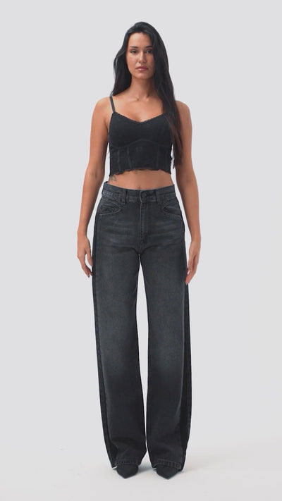 Kadın Koyu Füme 2s6-1 Loose Fit Yandan Süet Şeritli Tasarım Denim Jean