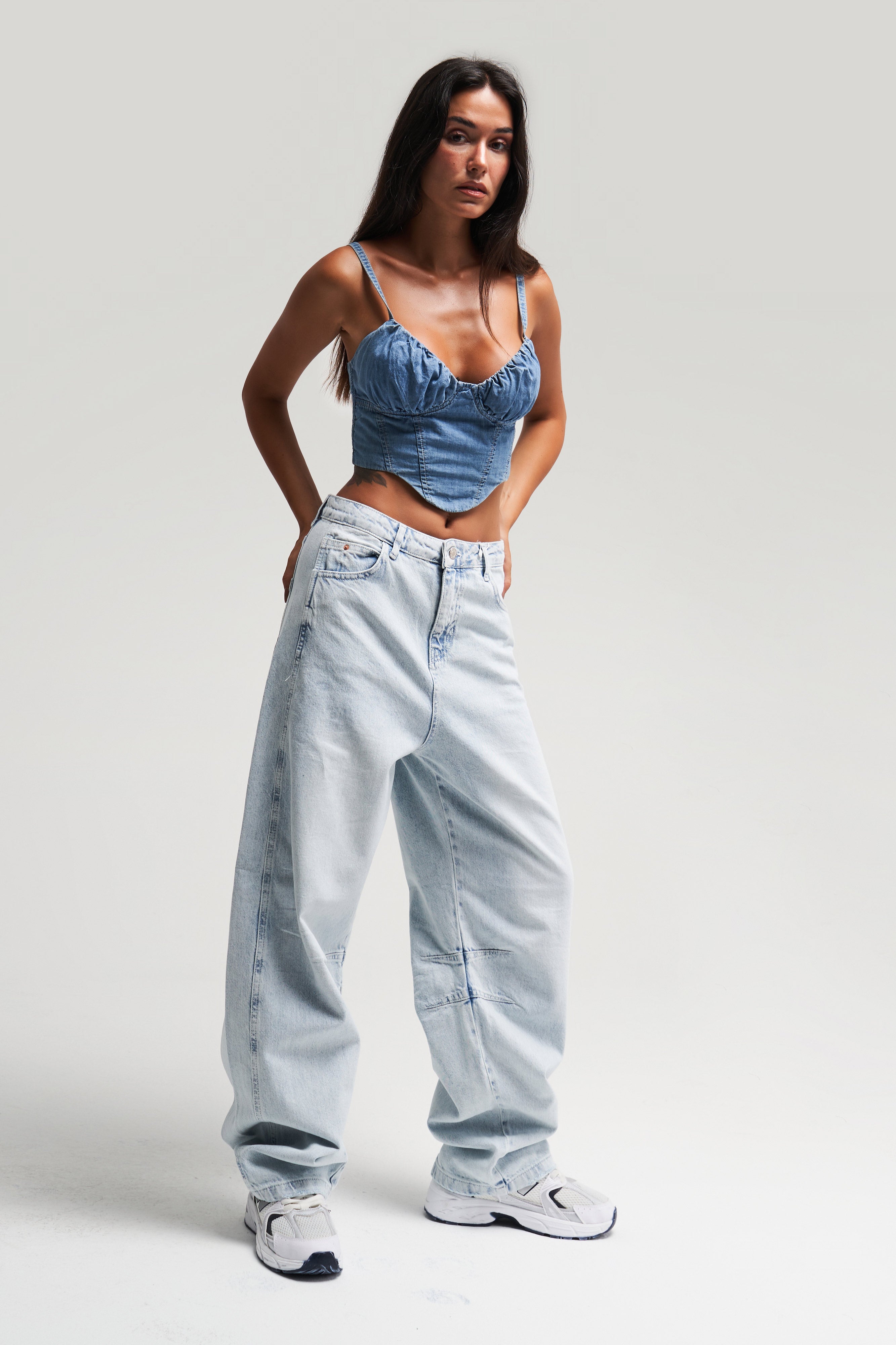 A must-have piece in every woman's wardrobe with a modern and comfortable style. These stylish denim trousers can be easily combined with any top with their dark smoke color. Thanks to their baggy fit design, they offer both elegance and comfort. While their comfortable cut provides freedom of movement throughout the day, the quality structure of the denim fabric offers long-lasting use. In addition to being a timeless option, the dark smoke color can also be used in different seasons. It can be easily preferred in a wide range from special days to daily life. The loose cut of the trousers allows you to achieve both sporty and stylish looks. You can create a spacious and trendy style by combining it with a t-shirt, blouse or sweatshirt. The care in the stitching and the practicality of the pockets are among the elements that make these trousers even more special. This design, which appeals to women of all ages, can be worn comfortably in both daily and slightly formal environments. Designed to meet the expectations of fashion enthusiasts, these denim trousers are an ideal option to complete your style. Get both a stylish and comfortable look with Women's Dark Smoke Color Baggy Fit Loose Cut Denim!