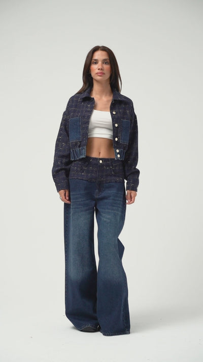 Kadın Koyu Kot Rengi 2w5-7 Palazzo Fit Çift Parça Kumaş Özel Tasarım Denim Jean