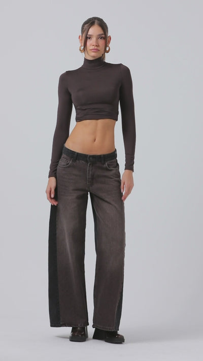 Kadın Koyu Kot Taş Rengi 2w5-16 Süper Palazzo Fit Komfort Kumaş İç Boy 80cm Kemer Detaylı Tasarım Denim Jean