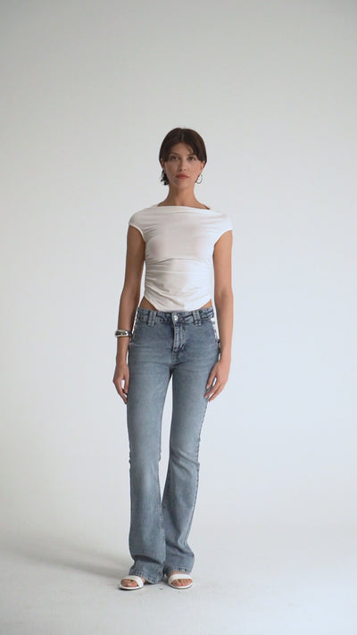 Kadın Mavi Renk 4s5-24 Flare Fit İspanyol Paça Likralı Kumaş Dantel Detaylı Tasarım Denim Jean