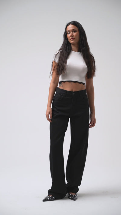 Kadın Siyah Renk 1s5-1 Loose Fit Orta Bel Viskon Kumaş %100 Koton Denim Jean