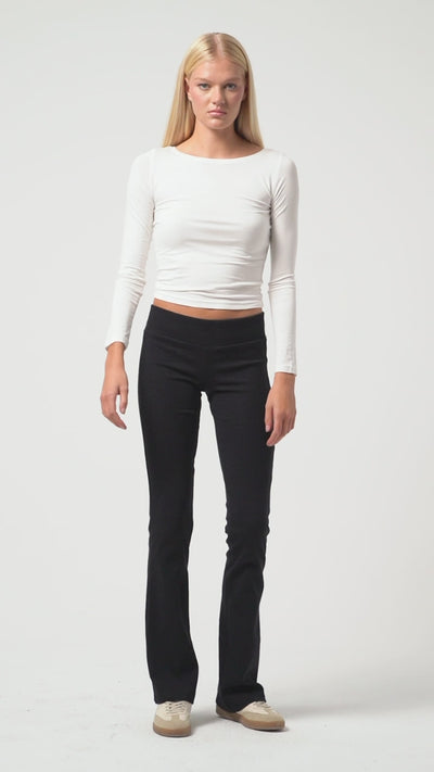 Kadın Siyah s5-1 Slim Fit Süper Esnek Kumaş Flare Fit Pantolon