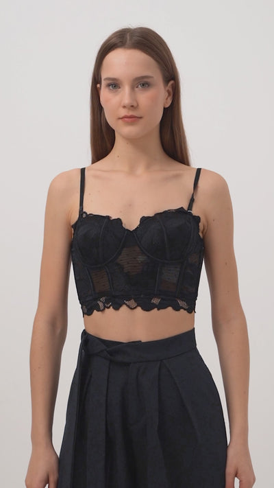 Kadın Siyah w5 Balenli Güpür Dantel Detaylı Askılı Özel Tasarım Büstiyer
