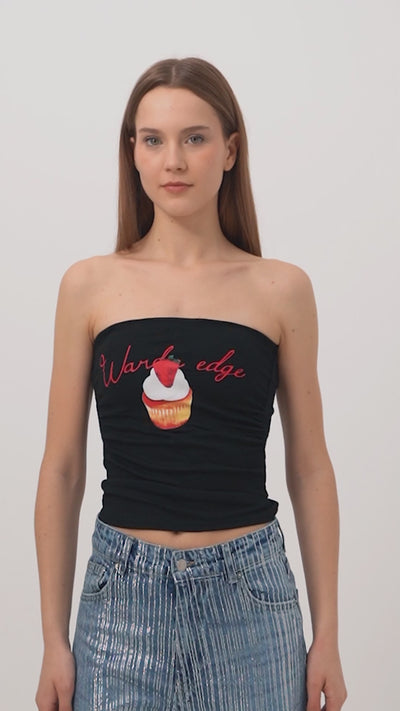Kadın Siyah w5 Baskılı Cup Destekli Straplez Tasarım Büstiyer