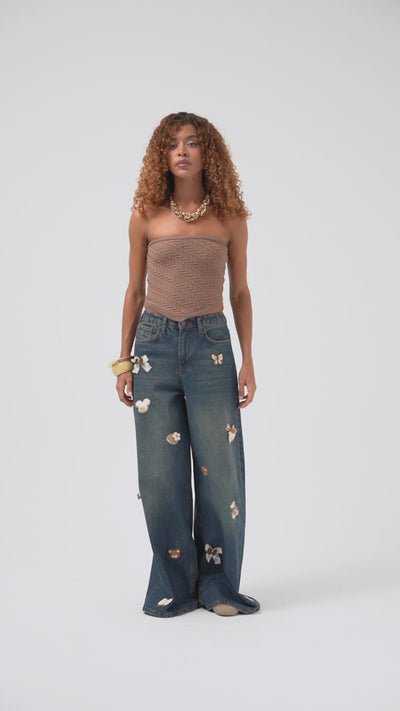 Kadın T.Kot Rengi 2w5-8 Loose Wide Leg Orta Bel Obje Detaylı Özel Tasarım Denim Jean