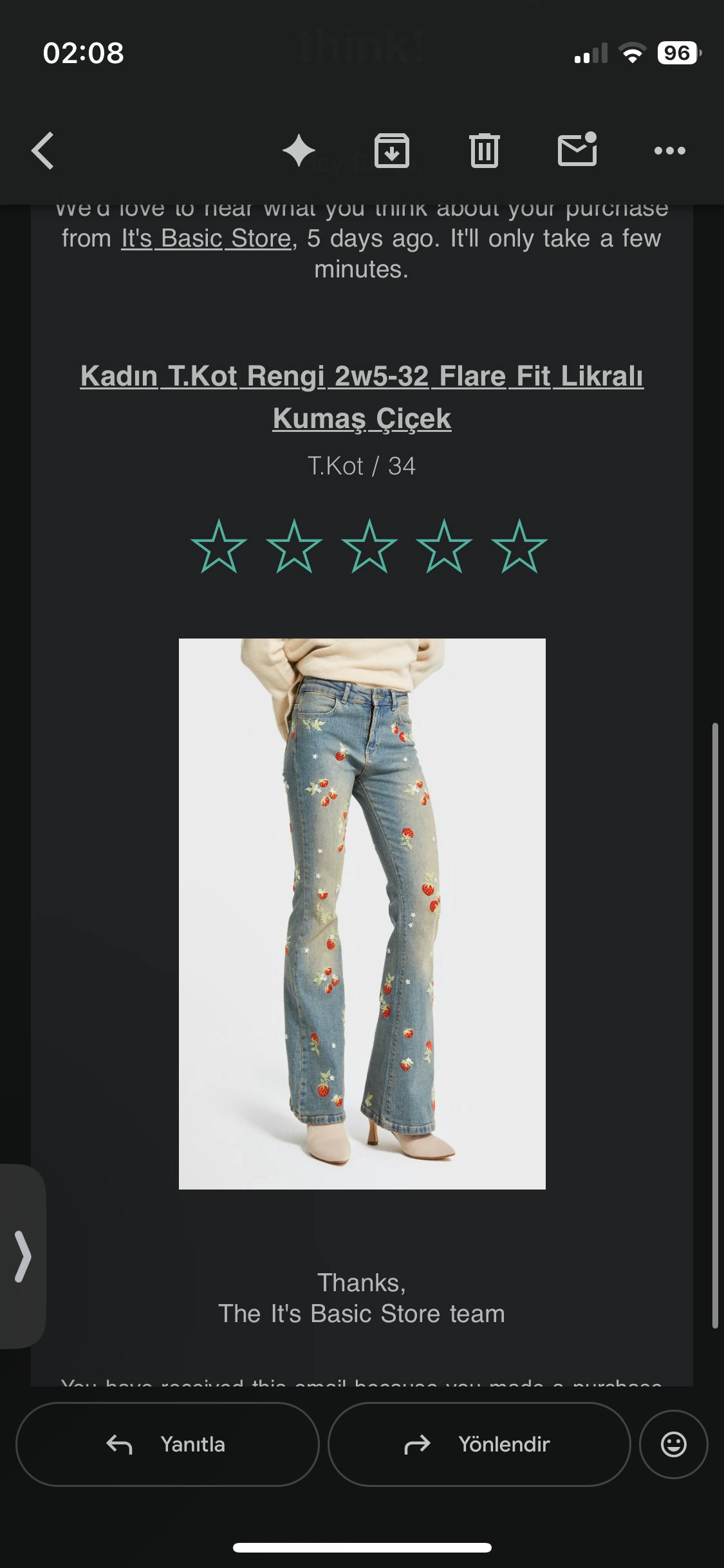 Kadın T.Kot Rengi 2w5-32 Flare Fit Likralı Kumaş Çiçek Nakış Desenli Özel Tasarım Denim Jean