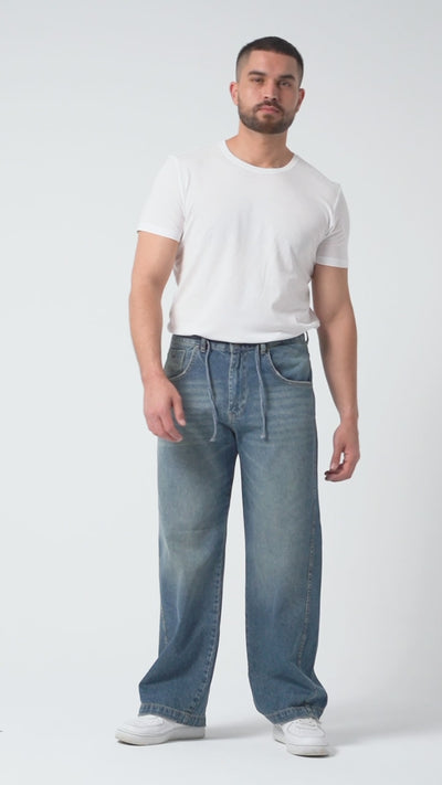 Erkek T.Kot Rengi NC17 2w5-32 Relaxed Baggy Fit Kemeri Bağcıklı İç Boy 79cm %100 Koton Denim Jean