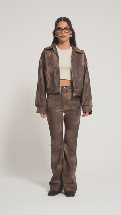 Kadın Batik Renk w5-16 Bol Kesim Özel Renk Tasarım Deri Ceket