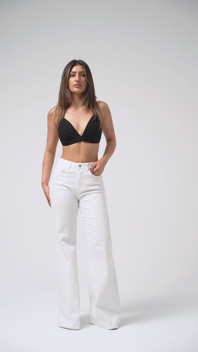 Kadın Beyaz Renk 5s5-2 Flare Fit Bol Paça %100 Koton İç Göstermez Denim Jean