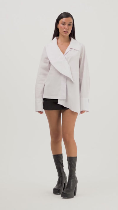 Kadın Beyaz Renk Bol Kesim Yaka Detaylı Özel Tasarım Gömlek