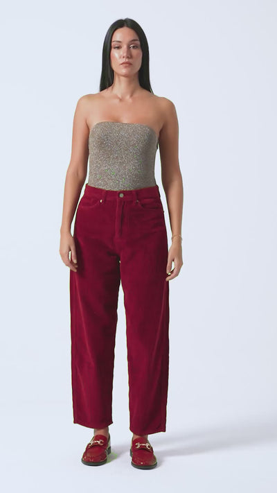 Kadın Bordo Renk 26w5-35 Relax Fit Kalın Fitilli Velvet Kadife Kumaş Pantolon