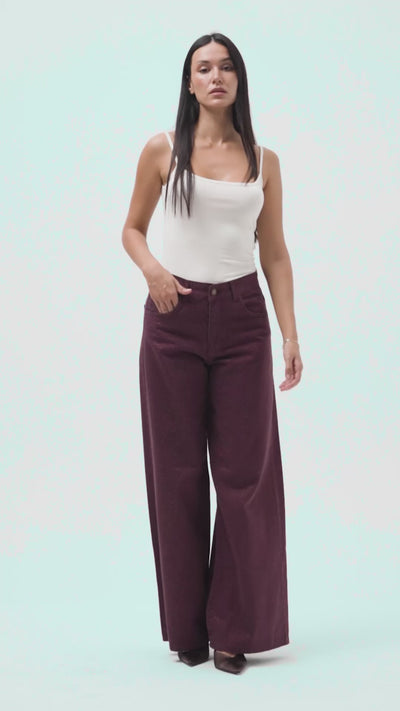 Kadın Bordo Renk T-6w5-122 Palazzo Fit Parlak Taşlı Özel Tasarım Denim Jean