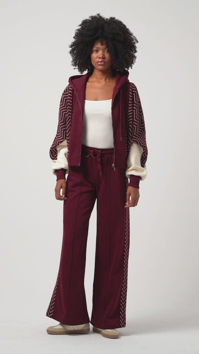 Kadın Bordo Renk w5-35 Kapişonlu Sweatshirt Polar Eşofman Alt 2li Kombin Kumaş Tasarım Takım