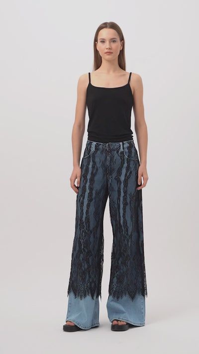 Kadın Dantel Kot Rengi Palazzo Fit Dantel Detaylı Özel Tasarım Denim Jean