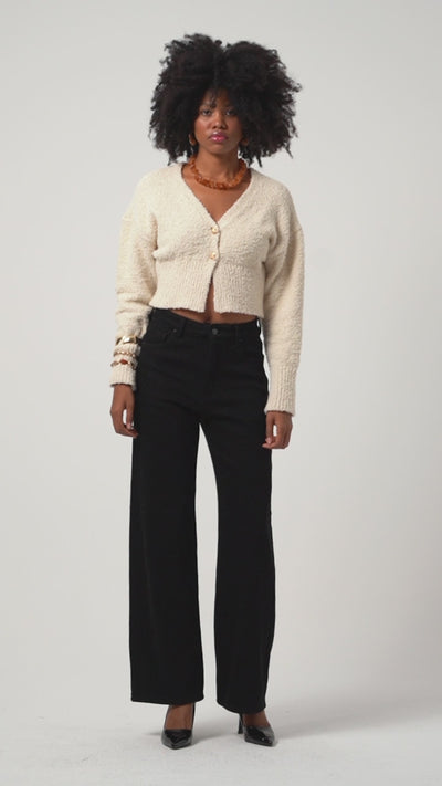 Kadın Ekru Renk w5-105 Aksesuar Detaylı Püsküllü Kumaş Kazak Hırka