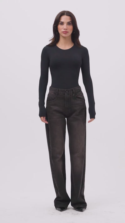 Kadın Füme Renk 2w5-62 Loose Fit Yan Süet Detaylı Özel Tasarım Denim Jean