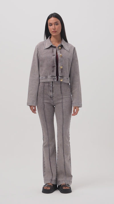 Kadın Gri 3s6-158 Flare Fit Esnek Kumaş Denim Jean