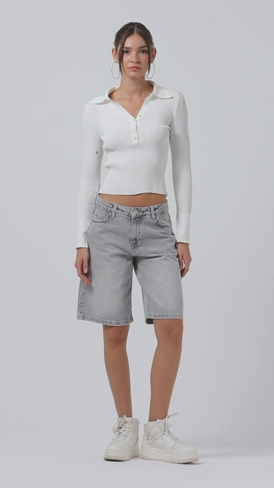 Kadın Gri Renk 4s5-12 Baggy Bermuda Fit %100 Koton Maxi Boy Denim Şort
