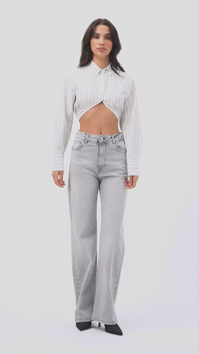 Kadın Gri Renk 4s6-12 Straight Fit Yüksek Bel Elastan Kumaş Denim Jean