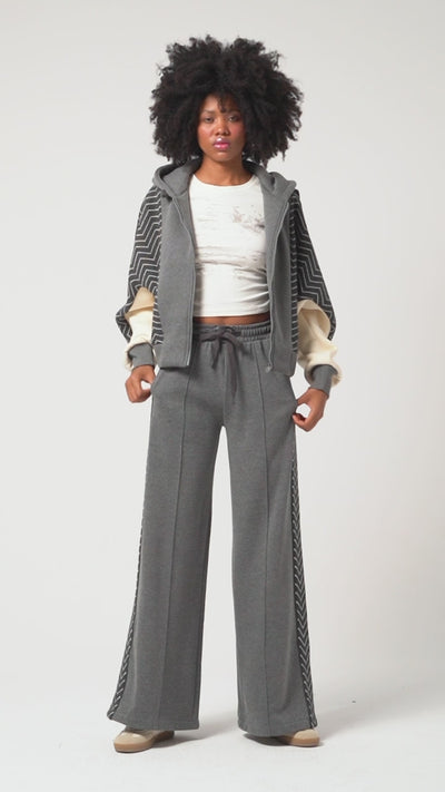 Kadın Gri Renk w5-45 Kapişonlu Sweatshirt Polar Eşofman Alt 2'li Kombin Kumaş Tasarım Takım