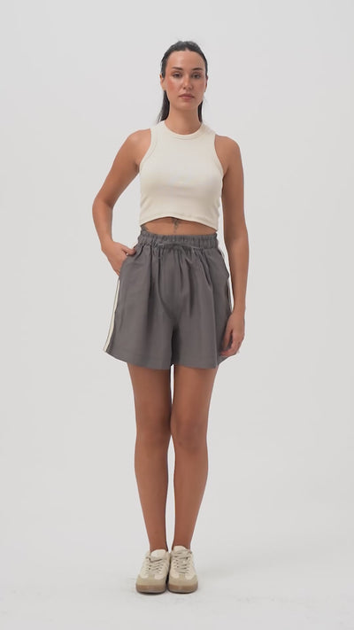 Kadın Gri s6-106 Bol Kesim Şerit Detaylı Esnek Kumaş Şort