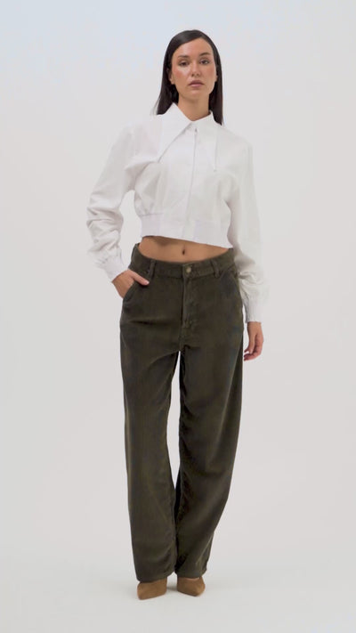 Kadın Haki Juniper 26w5-15 Skater Fit Fitilli Velvet Kadife Kumaş Pantolon