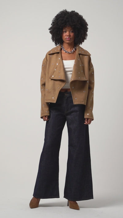 Kadın İndigo Renk 7w5-50 Palazzo Fit %100 Koton Dökümlü Kumaş Denim Jean