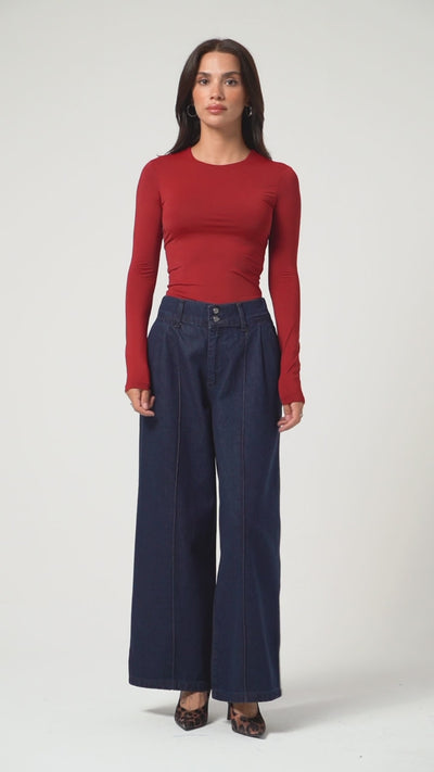 Kadın İndigo Renk 7w5-50 Wide Leg Fit İç Boy 74cm Bol Kesim Viskon Kumaş Kemer Detaylı Denim Jean İndirimli fiyat799.99TL Normal fiyat999.99TL