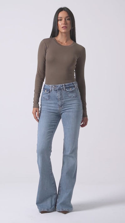 Kadın Ice Kot Rengi 4s6-3 Flare Fit Viskon Elastan Kumaş Denim Jean