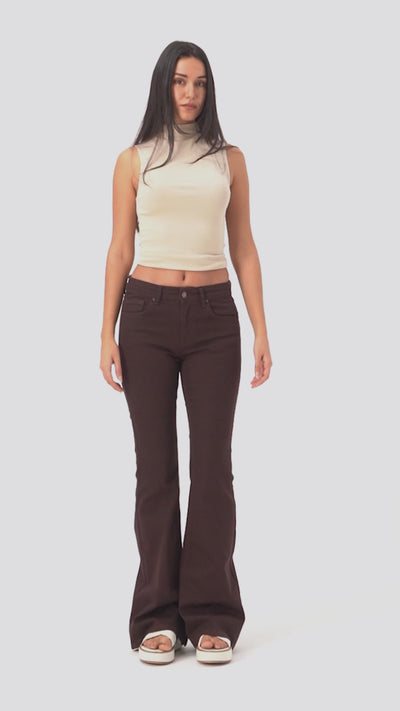 Kadın Kahve 7s6-81 Mid Rise Flare Fit Esnek Kumaş Denim Jean