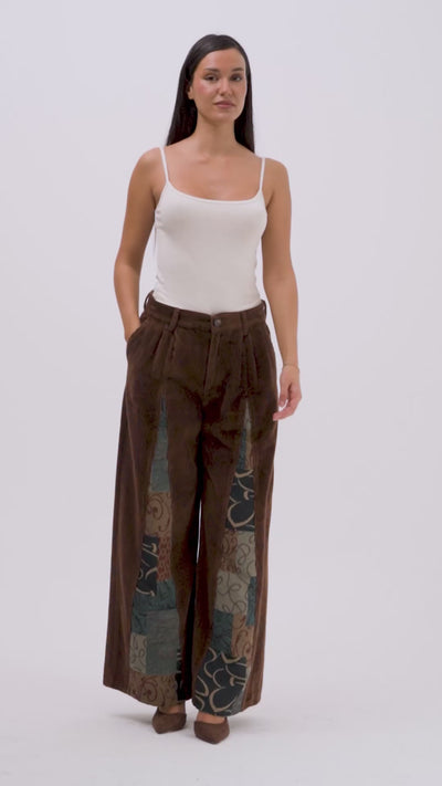 Kadın Kahve Etnik Desen 26w5-42 Palazzo Fit Özel Tasarım Velvet Kadife Kumaş Pantolon