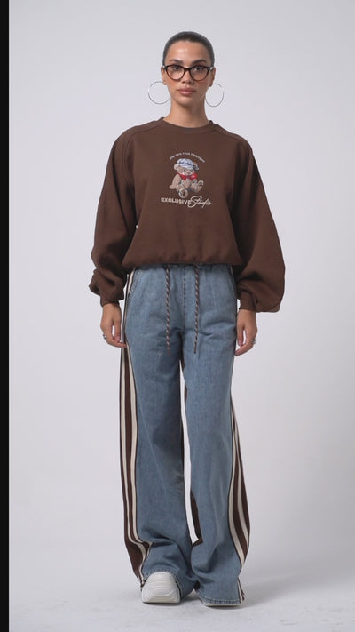 Kadın Kahve Kot Rengi w5-16 Tasarım Sweatshirt Pantolon 2li Kombin Takım