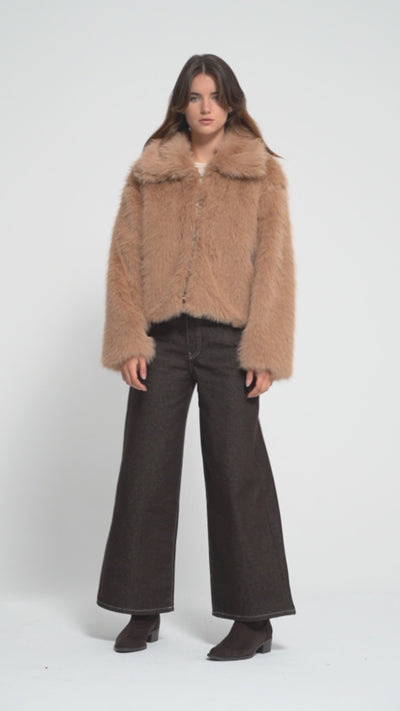 Kadın Kahve Renk w5-82 Yakalı Kürk Mont