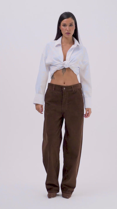 Kadın Kahverengi 8-26w5-42 Skater Fit Fitilli Velvet Kadife Kumaş Pantolon