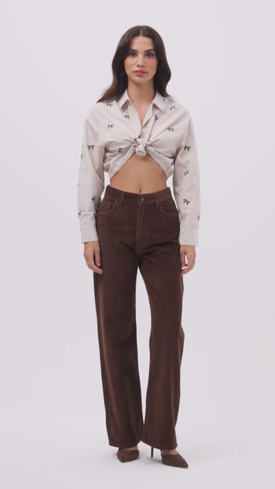 Kadın Kahverengi Doris 26w5-42 Straight Fit Yüksek Bel İç Boy 80cm Kalın Fitilli Kadife Velvet Kumaş Pantolon