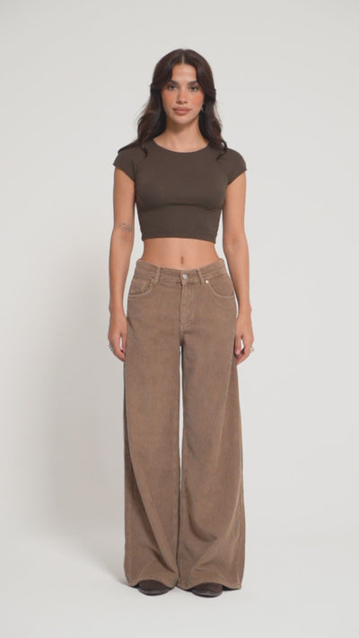 Kadın Kahverengi Hera 29w5-29 Palazzo Fit Kalın Fitilli Velvet Kadife Kumaş Pantolon