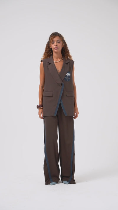 Kadın Kahverengi Palazzo Fit Denim Detaylı Özel Tasarım Pantolon