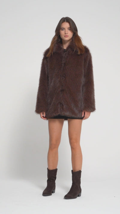 Kadın Kahverengi w5-16 Özel Kumaş Kürk Mont Kaban