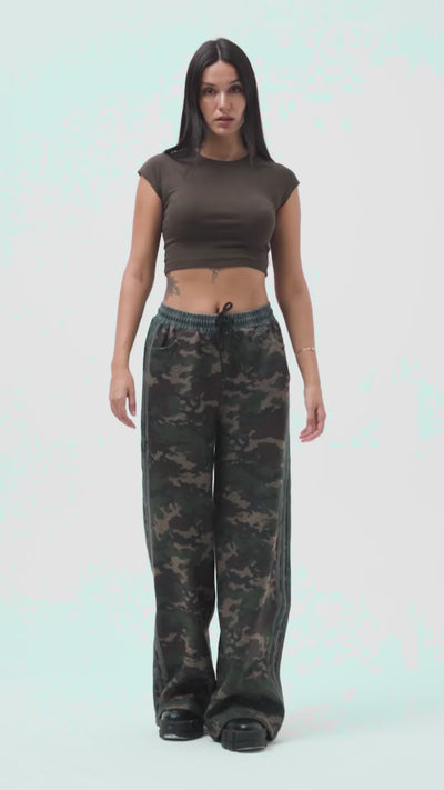 Kadın Kamuflaj Renk Palazzo Fit Şerit Detaylı Özel Tasarım Pantolon
