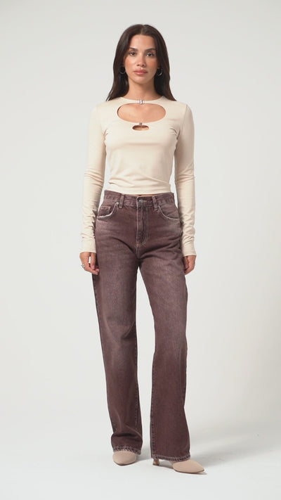 Kadın Taşlanmış Bordo Renk 2w5-131 Loose Fit Orta Bel İç Boy 80cm %100 Koton Denim Jean