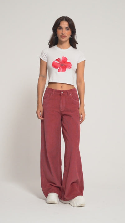 Kadın Koral Renk Hera 29w5-104 Palazzo Fit Kalın Fitilli Velvet Kadife Kumaş Pantolon