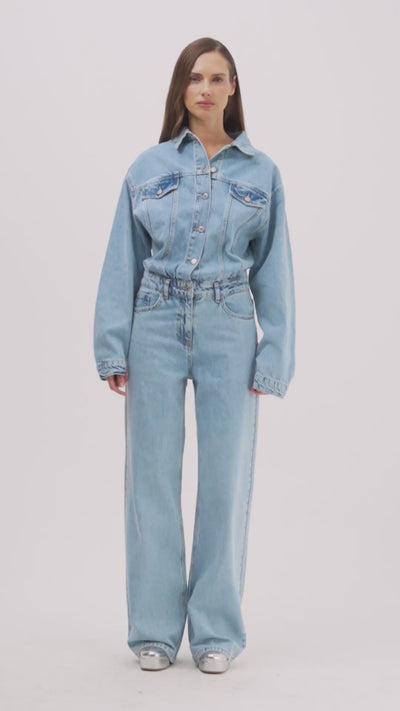 Kadın Kot Rengi 3s6-3 Straight Fit %100 Koton Denim Tulum